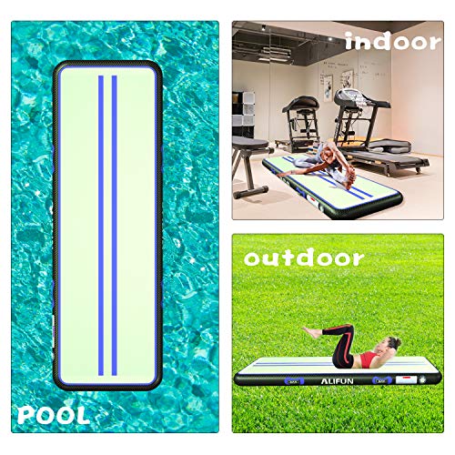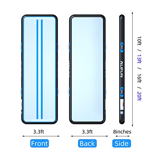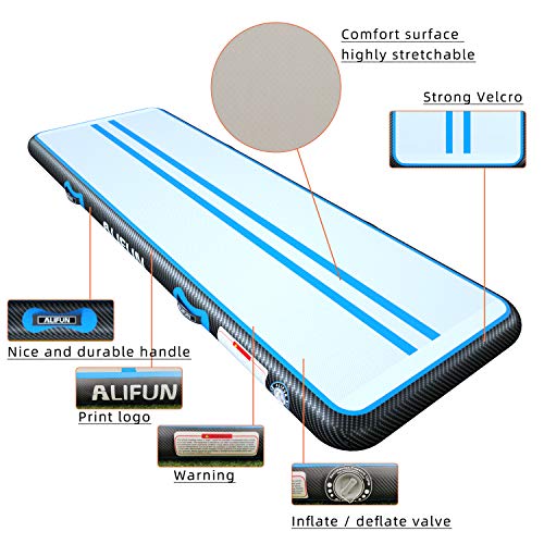 Premium Tumbling Air Mat – ALIFUN tuimelmat Gewicht capaciteit 250 lbs, Max druk 2.2PSI.We gebruiken grote klep laat het nul luchtlekkage, riem sterk en kleurrijk.Onze Tumble Air Mat kan worden gebruikt in training, gymnastische oefeningen, home entertainment en etc.Het is geweldig cadeau voor uw gezin.