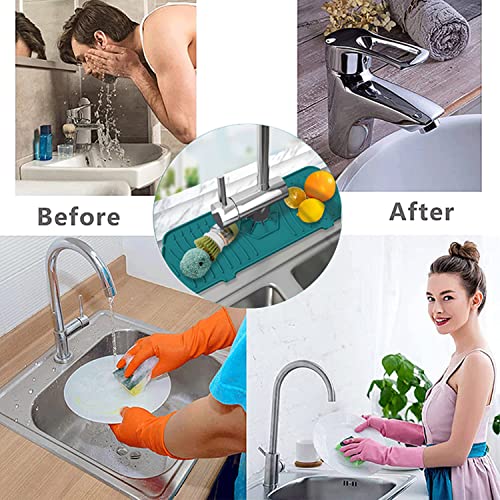 ♨Super Absorbent:Silicone faucet splash guard is like a huge sponge, instantly absorbing water splash and preventing water accumulation. The rubber backing keeps water from running underneath and messing up your counter.
