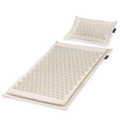 Luxueuze kwaliteit: gemaakt van 100% natuurlijk linnen en kokosvezelvulling, de acupressuurmat heeft 6.534 acupressuurpunten; het nekkussen is gevuld met zacht PP-katoen en heeft 1.377 acupressuurpunten.